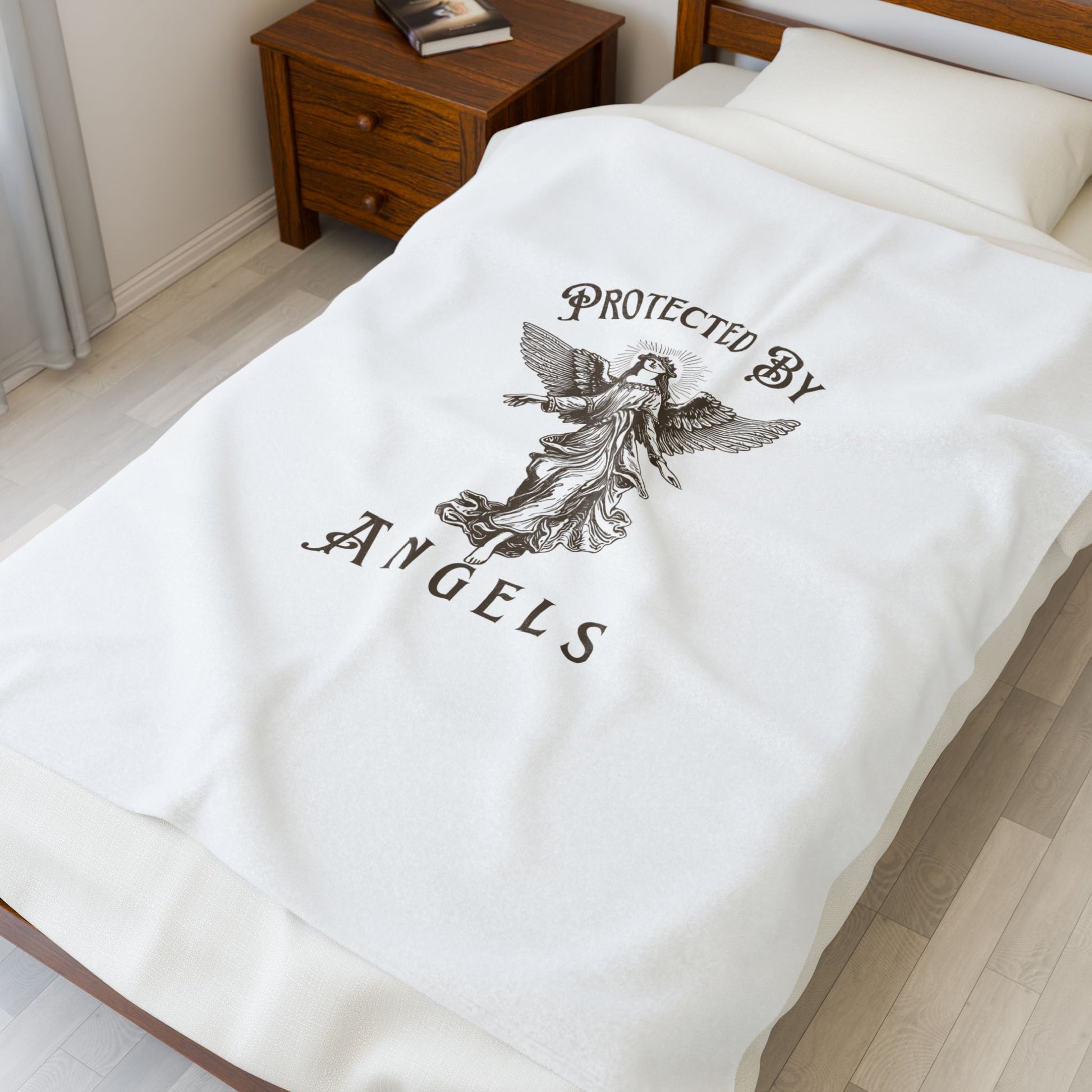 Velveteen Plush Blanket — "Protected by Angels" Vintage Angel Throw